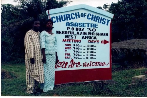 Cosmos Kaku; Ellembelle District; Ghana, West Africa. Cosmos Kaku ministers to 13 rural congregations of the church of Christ. His home congregation is the Asasetre church of Christ. The population of Asasetre is approximately 2000. Brother Kaku also trains bible teachers so that they are equipped to minister in the various local congregations. He conducts many house-to-house bible studies, and distributes bible tracts and materials. Cosmos utilizes public announcement radio every Sunday to further spread the gospel of Christ. Brother Kaku has been laboring for the cause of Christ for several decades and has brought many souls to Christ. He is zealous to preach and teach the gospel to as many as he possibly can.